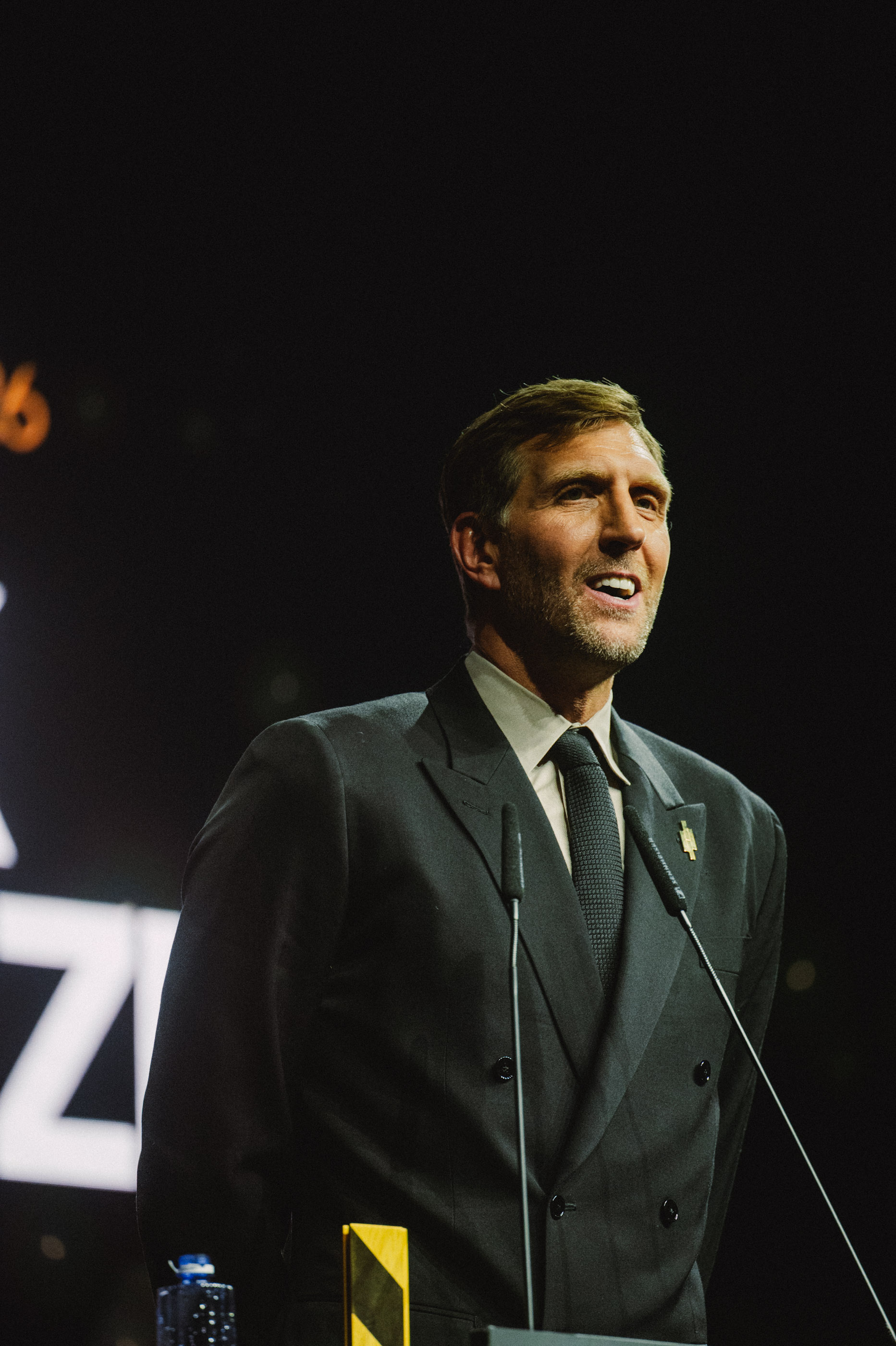 Dirk dankte in seiner Rede ehemaligen Mitspielern, Trainern und Wegbegleitern – ganz besonders seinem Trainer Holger Geschwindner: »Du hast mich als Mensch geformt, nicht nur als Basketballspieler. Du hast an mich geglaubt, wenn ich nicht an mich geglaubt habe. Ohne dich würde ich heute nicht auf dieser Bühne stehen.« Dieser war vor auch als Mentor für Dirks Karriere entscheidend: »Ich habe gelernt, dass ein Mentor essenziell für dein Leben und deine Karriere ist. Harry Potter hatte Dumbledore, Alexander der Große hatte Aristoteles, ich hatte Holger.«